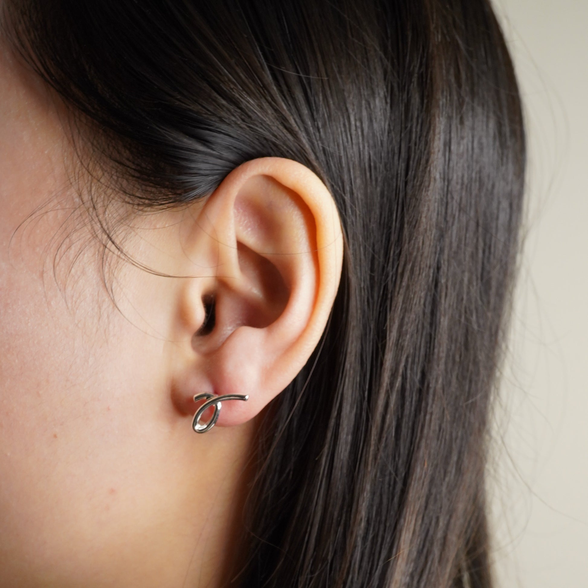 Details: These earrings feature a sleek and modern design with a minimalist aesthetic. Crafted in polished silver and gold tones, each earring forms an abstract loop with a gentle, flowing curve that resembles a stylized ribbon or knot.