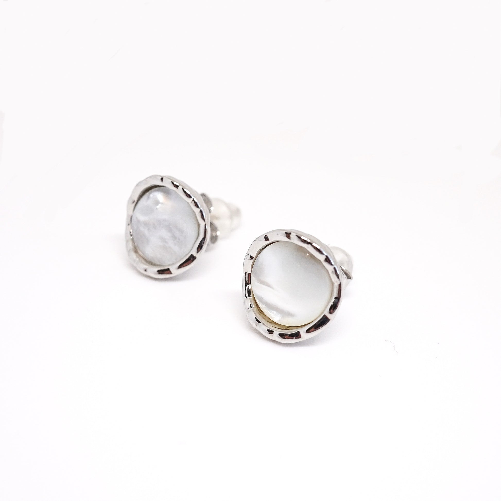 Details: Feature polished silver frames encircling luminous, pearl-like centers that radiate subtle elegance. Their minimalist yet refined design makes them a versatile accessory, perfect for both everyday wear and special occasions.